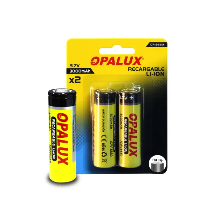 BATERIA RECARGABLE 18650 (FC) LI-ION 3.7V “OPALUX” 3000MAH X2 UND.
