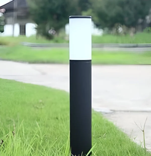 BOLARDO “LIFE” PARA EXTERIORES 60M ALTURA 20CM DIAMETRO PARA FOCO E27 BASE Y REPUJADO DE ALUMINIO Y PVC COLOR NEGRO ACRILICO TRANSPARENTE Y DIFUSOR BLANCO