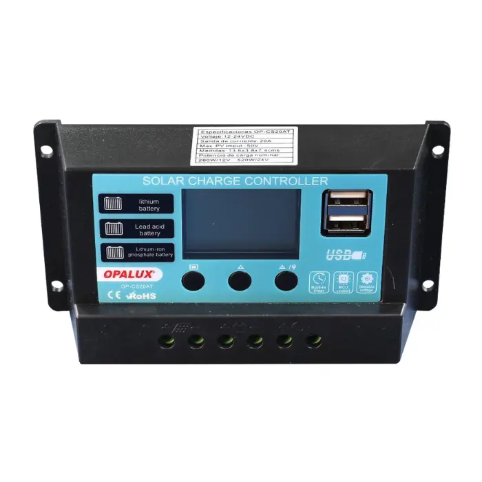 CONTROLADOR SOLAR DE CARGA INTELIGENTE “OPALUX” 20A 50V 12-24VDC