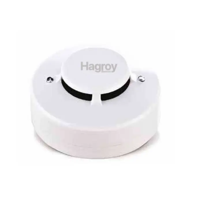 Detector de humo HAGROY tipo fotoeléctrico de Alarmas Contra Incendio para sistemas centralizados para obtener certificado de Defensa Civil. Se activa cuando existe una presencia de humo en el ambiente salvando vidas, ideal para oficinas, fábricas, edificios por departamentos, almacenes y cualquier otro ambiente donde exista un riesgo de incendio.
