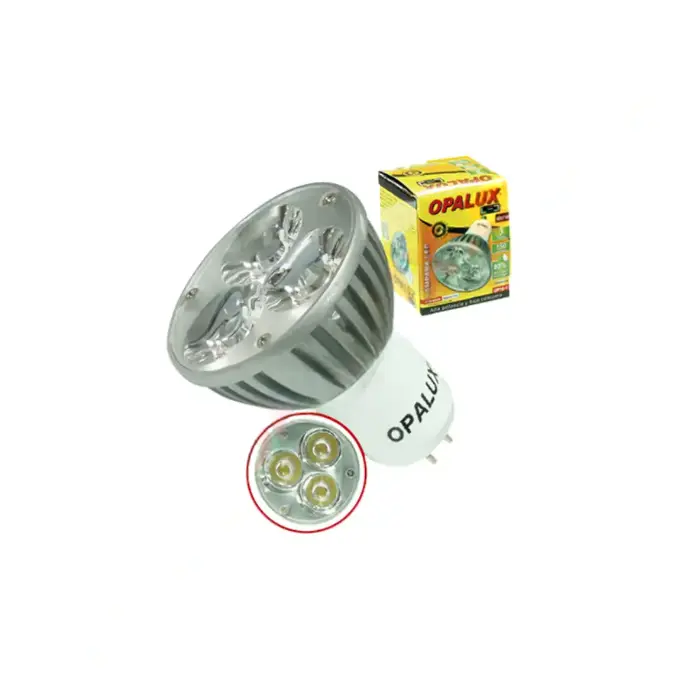 Dicroico led 3W “Opalux” Luz Blanca 5700K-6200K 220v conector MR16 150 lumens 35,000hrs decorativo