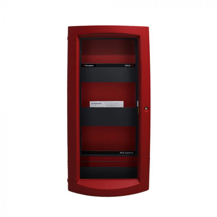 GABINETE ROJO DE 3 BAHIAS CON PUERTA DE VIDRIO PARA PANEL 4100ES