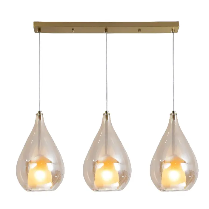 LAMPARA COLGANTE “OPALUX” BARRA 3X E27 CARELIA GOLD COOPER + VIDRIO AMBAR